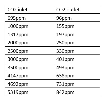 Below is the CO2 absorbing ability of the scrubber.